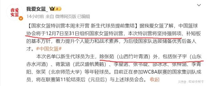 中國籃協(xié)這一次終于開竅了,為2米26的張子宇開綠燈。眾所周知,由于與山東隊合同遲遲未能簽約,張子宇錯過了WCBA新賽季揭幕戰(zhàn)。盡管現(xiàn)如今她已經(jīng)與山東隊完成簽約,不過,張子宇最快也要等到明年1月份還有機會登場。這也就意味著,接下來一個月內(nèi),張子宇將面臨無球可打的尷尬局面。為此,中國籃協(xié)也極為給力,他們特地為張子宇增加了一個女籃特訓(xùn)訓(xùn)練營,包括張子宇、張茹等人在內(nèi),他們都入選了該訓(xùn)練營。